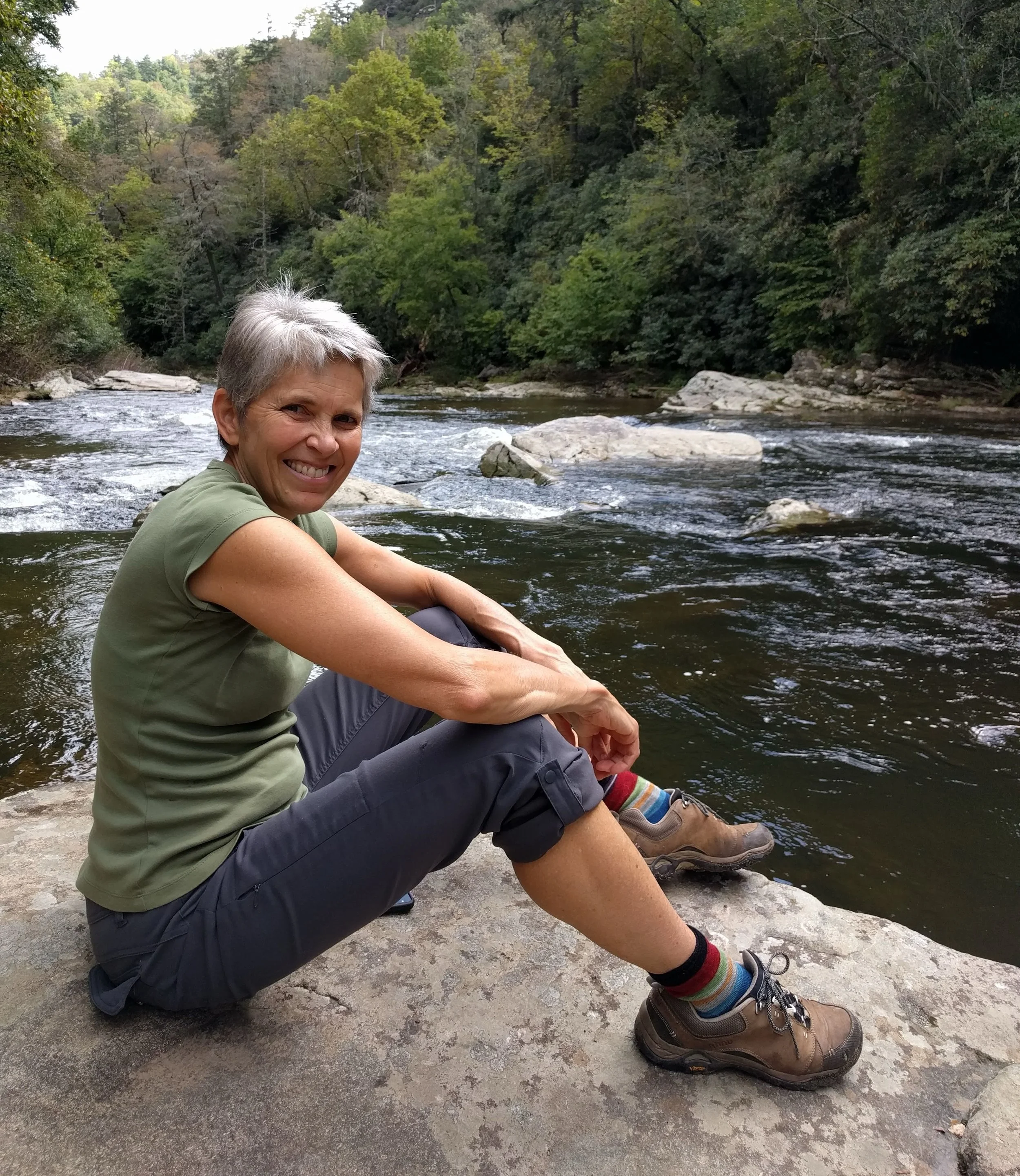 Anne currently lives in the beautiful Blue Ridge Mountains of North Carolina with her husband of thirty-three years and her sweet retriever pup. She can often be found exploring the trails in Pisgah National Forest with her dog or meditatively turning her pedals on the Blue Ridge Parkway. When she’s not outdoors, Anne is passionately speaking, facilitating circle and ceremony, writing, healing, divining, or making art.